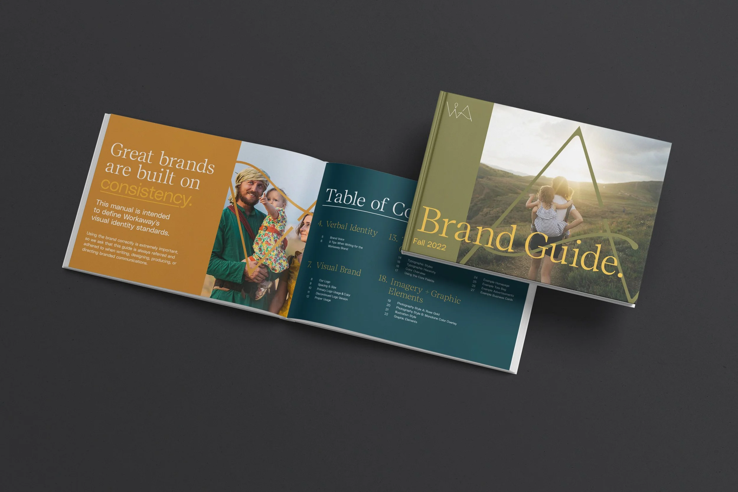 A new logo, visual identity, and brand book for Workaway - connecting travels and hosts across the world.