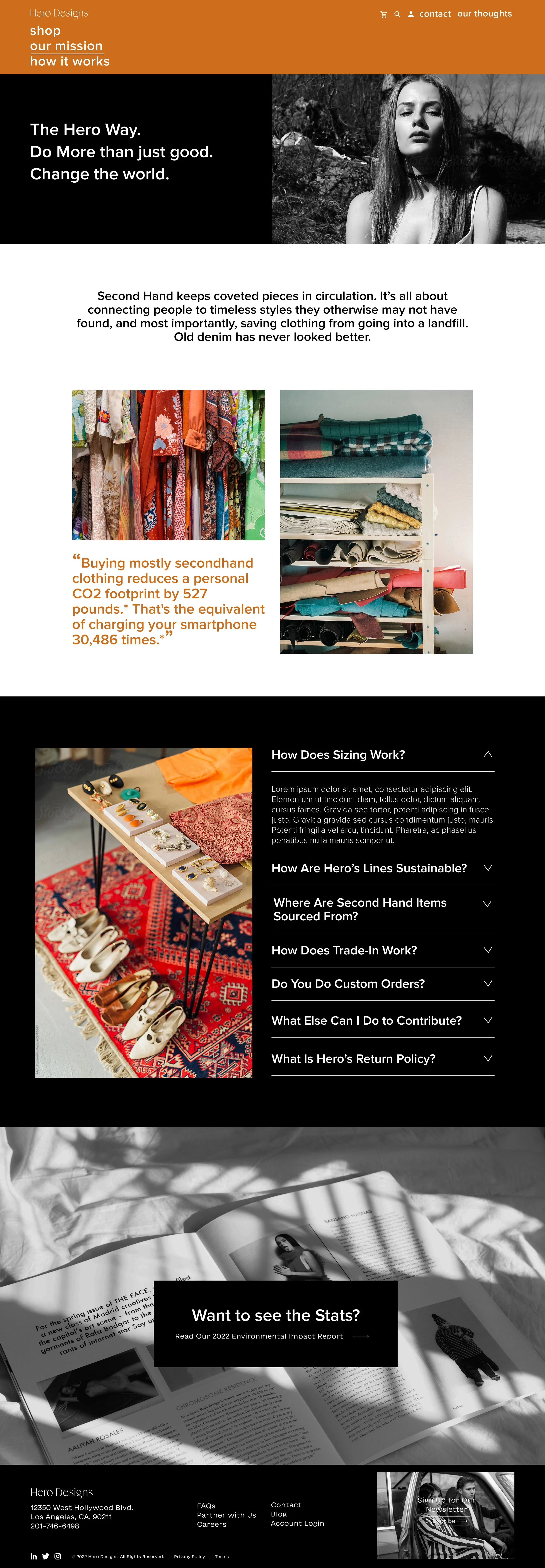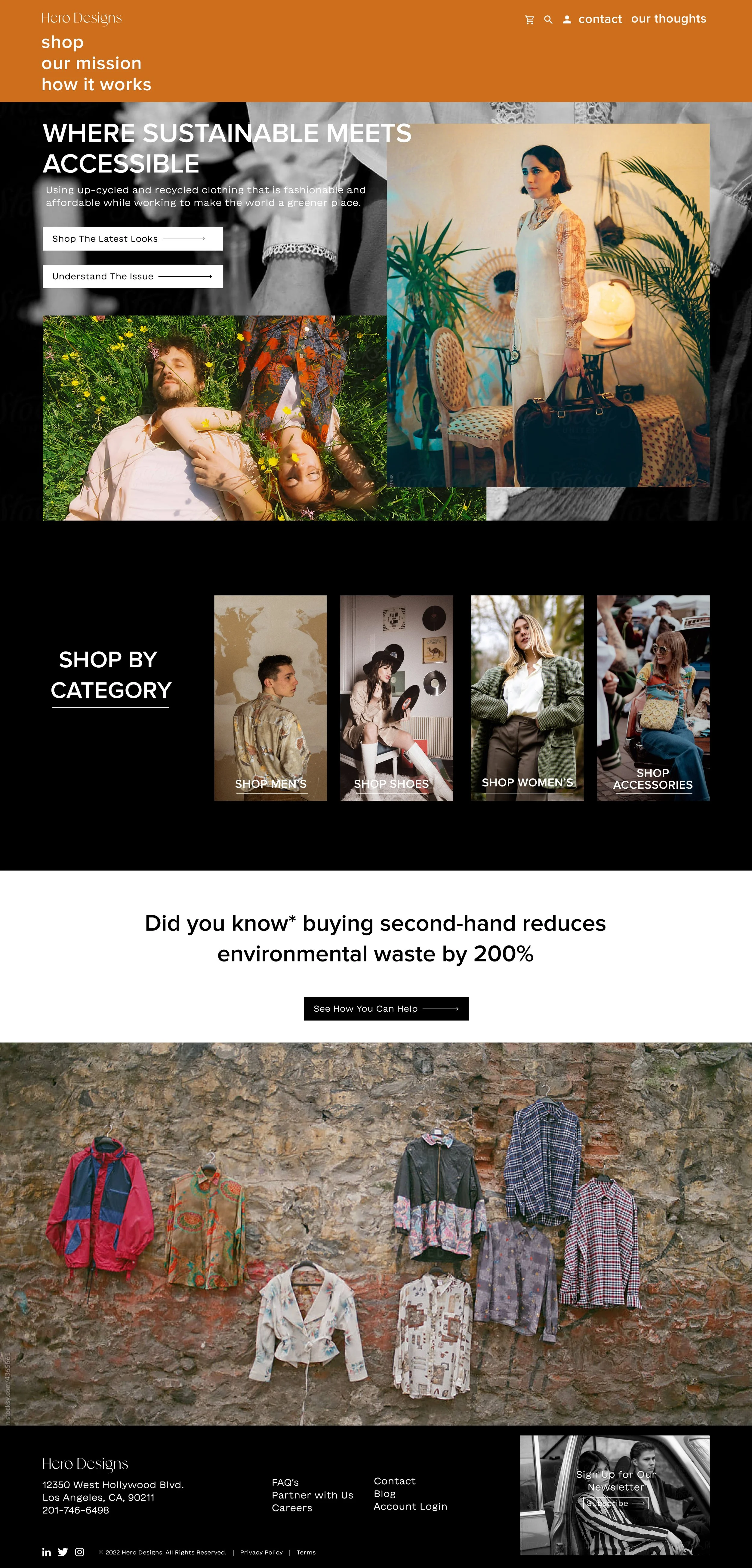 Create a responsive multi-page website that was both striking and functional. I created an e-commerce store-front design for a sustainable up-cycled clothing brand, encouraging people to buy once-worn while reducing their eco footprint.